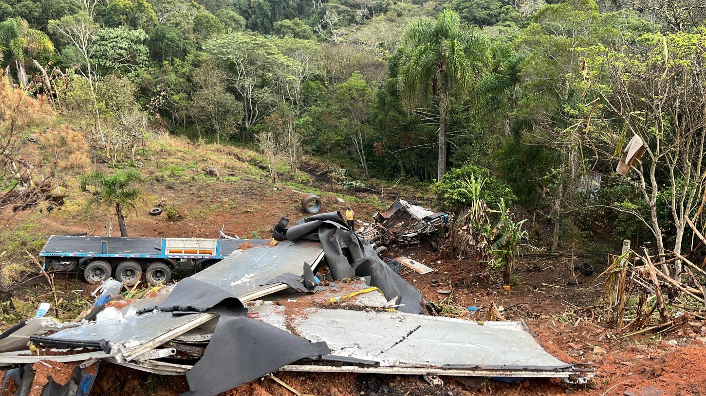 O fato ocorreu fora das faixas de rolamento da rodovia. Após a colisão, uma das carretas caiu em uma ribanceira e ficou totalmente destruída, e o ônibus tombou. Segundo a concessionária que administra a rodovia, o ônibus pertence à Prefeitura Municipal de Campina Grande do Sul. Uma passageira do ônibus e um pedestre morreram. Outras dez pessoas ficaram feridas, sendo: