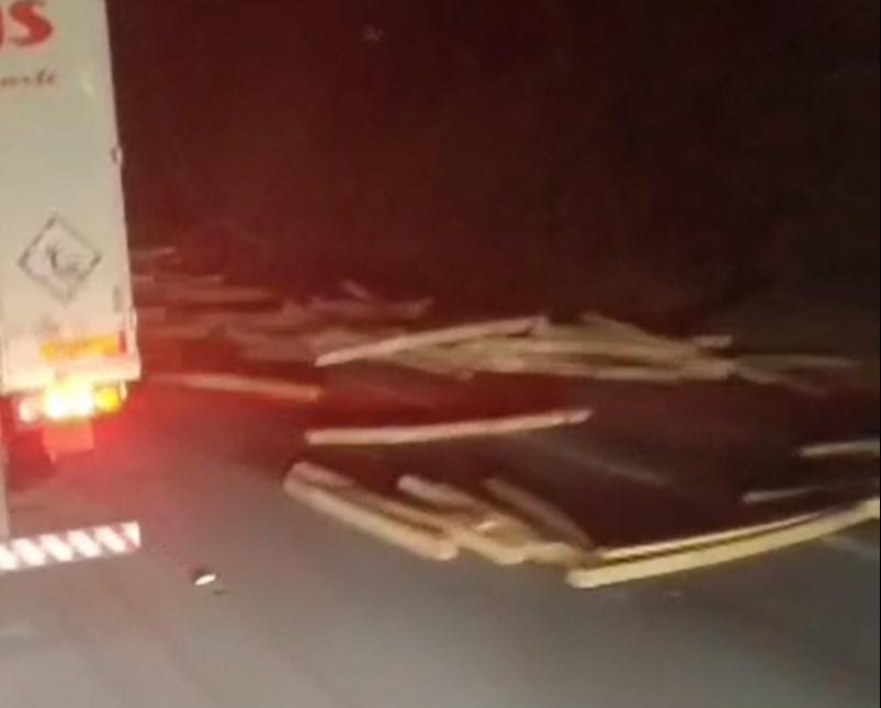 O primeiro caso ocorreu por volta das 3h10, no km 368,8 da rodovia, sentido São Paulo, em Miracatu. Uma carreta que transportava madeira tombou no canteiro central, por motivos ainda desconhecidos, derramando parte da carga na pista contrária. O motorista saiu ileso.