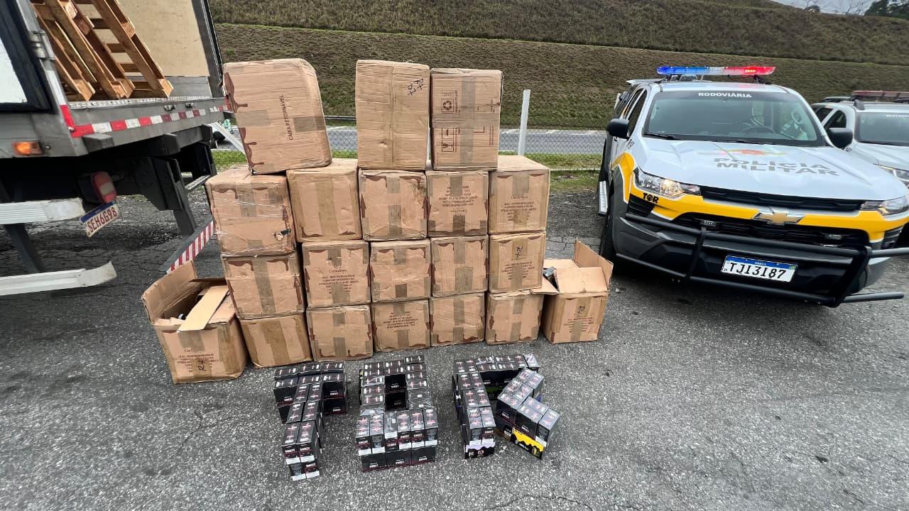 Uma carga de cigarros eletrônicos contrabandeados, avaliada em R$ 1,2 milhão, foi interceptada na Rodovia Régis Bittencourt, em Taboão da Serra, Grande SP, durante uma operação na manhã da última quinta-feira (09). A ação resultou na apreensão de 9.600 unidades do produto, cuja comercialização é proibida no Brasil, e na prisão em flagrante do motorista do veículo.
