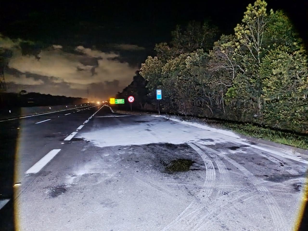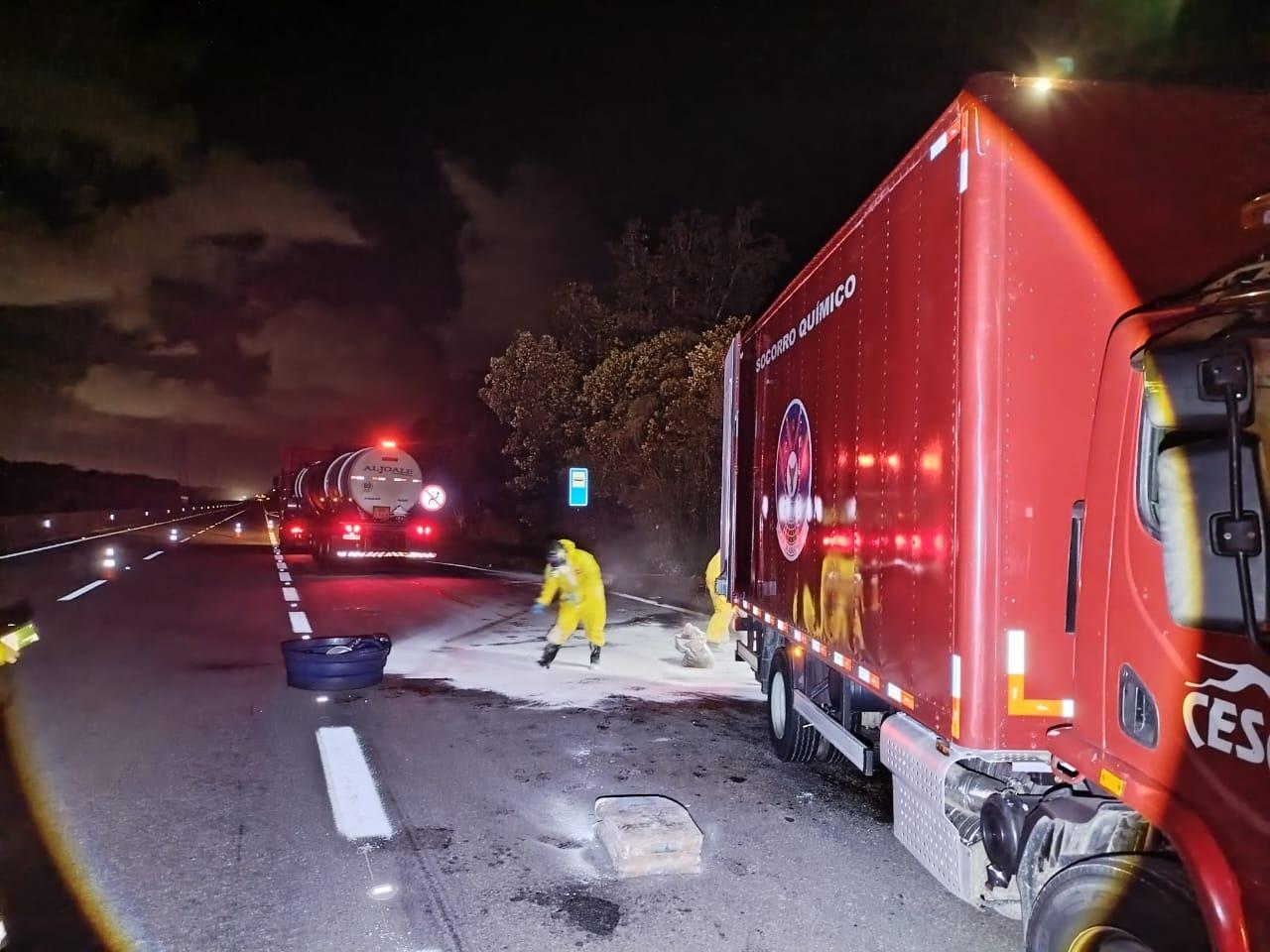 Ainda de acordo com o Policiamento Rodoviário, os bombeiros atuaram no controle da substância e na contenção do vazamento, enquanto a Polícia Rodoviária, com o apoio do Comando Grupo Patrulha (CGP), isolou a área e coordenou o fluxo de veículos, para garantir a segurança dos motoristas. Durante o atendimento, o tráfego permaneceu em apenas uma faixa, mas sem registro de congestionamentos.